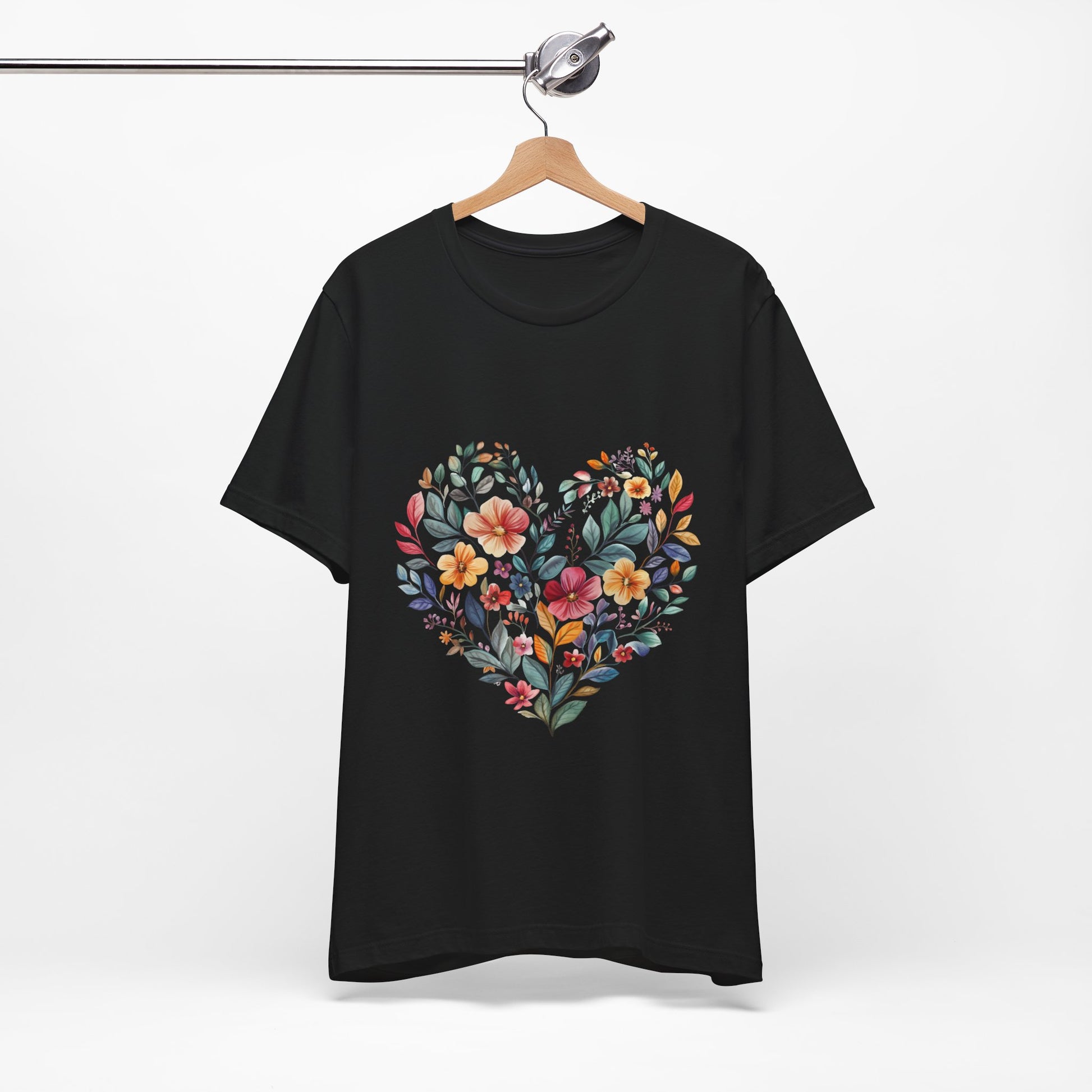 Celebrate your personal style with this Unisex Jersey Short Sleeve Tee, adorned with a beautiful floral heart design. This tee radiates warmth and positivity, making it an ideal choice for casual outings or cozy gatherings with loved ones. It's perfect for individuals who appreciate artful designs and want to express their unique personality. Whether you're dressing it up for a brunch with friends or keeping it casual for a weekend stroll, this tee adds a touch of charm to any outfit. Ideal for birthdays, anniversaries, or as a thoughtful gift during holidays, this tee will surely become a staple in your wardrobe. Designed for anyone who loves comfort without compromising on style, it fits seamlessly into your everyday life.