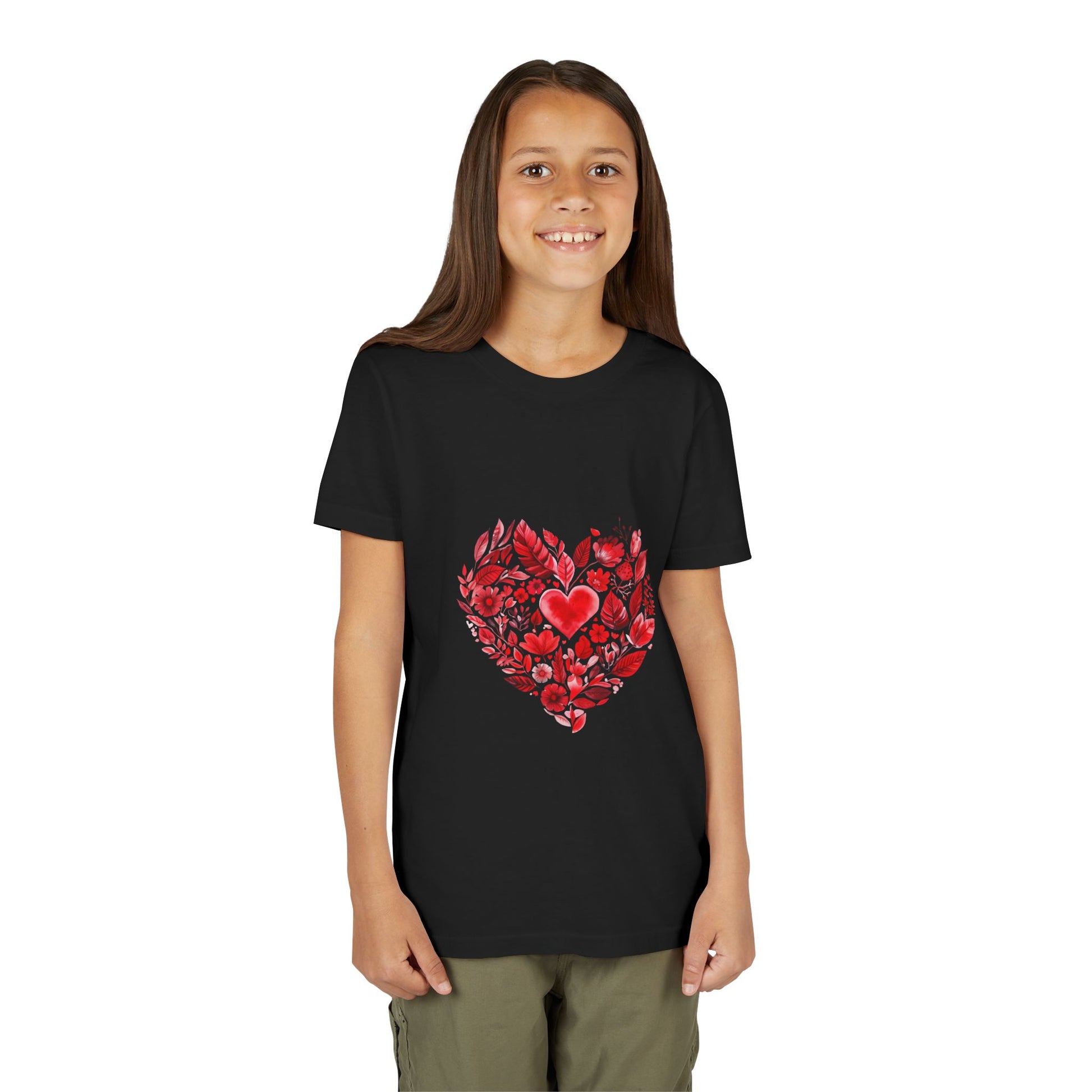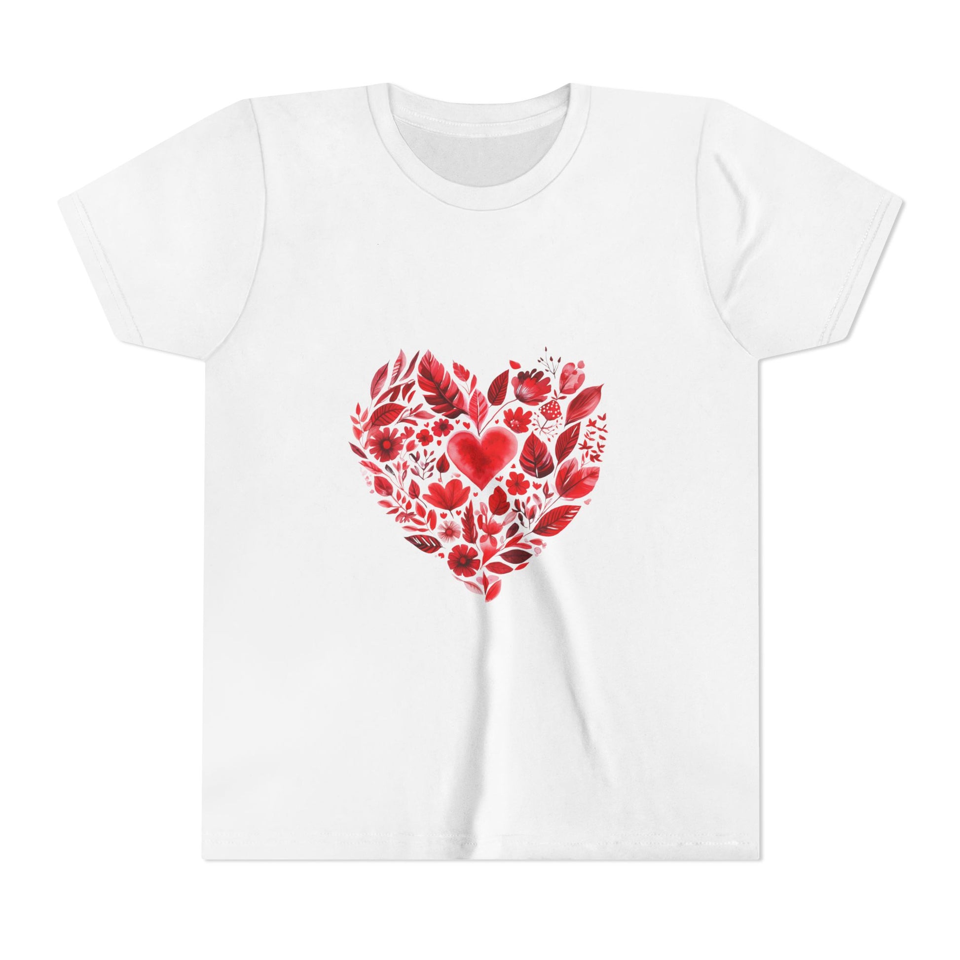 This Youth Short Sleeve Tee combines comfort and style seamlessly. Featuring a vibrant heart design made from delicate floral patterns, it radiates warmth and positivity. Ideal for casual outings, playdates, or family gatherings, this tee provides a modern look for kids who want to express their individuality. Parents will appreciate its durability and the soft feel of its premium fabric, making it perfect for everyday wear. Great for holidays like Valentine's Day, birthdays, or any occasion that calls for a cheerful touch, this tee is the perfect gift to celebrate love and friendship. Designed for both boys and girls, it's a versatile piece every child will love in their wardrobe.