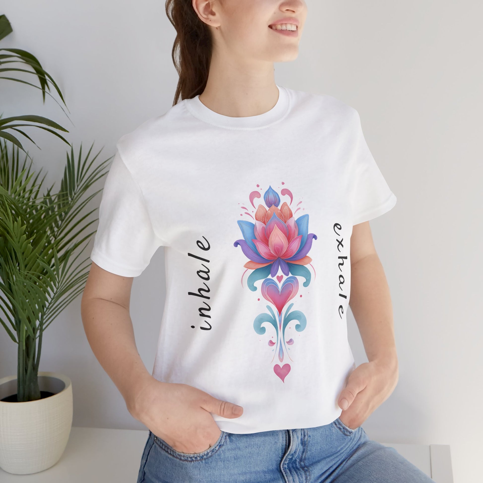 Lotus Flower Inhale Exhale Unisex Yoga Tee | Inspirational T-Shirt I Yoga Mindfulness Apparel I Meditation T-Shirt